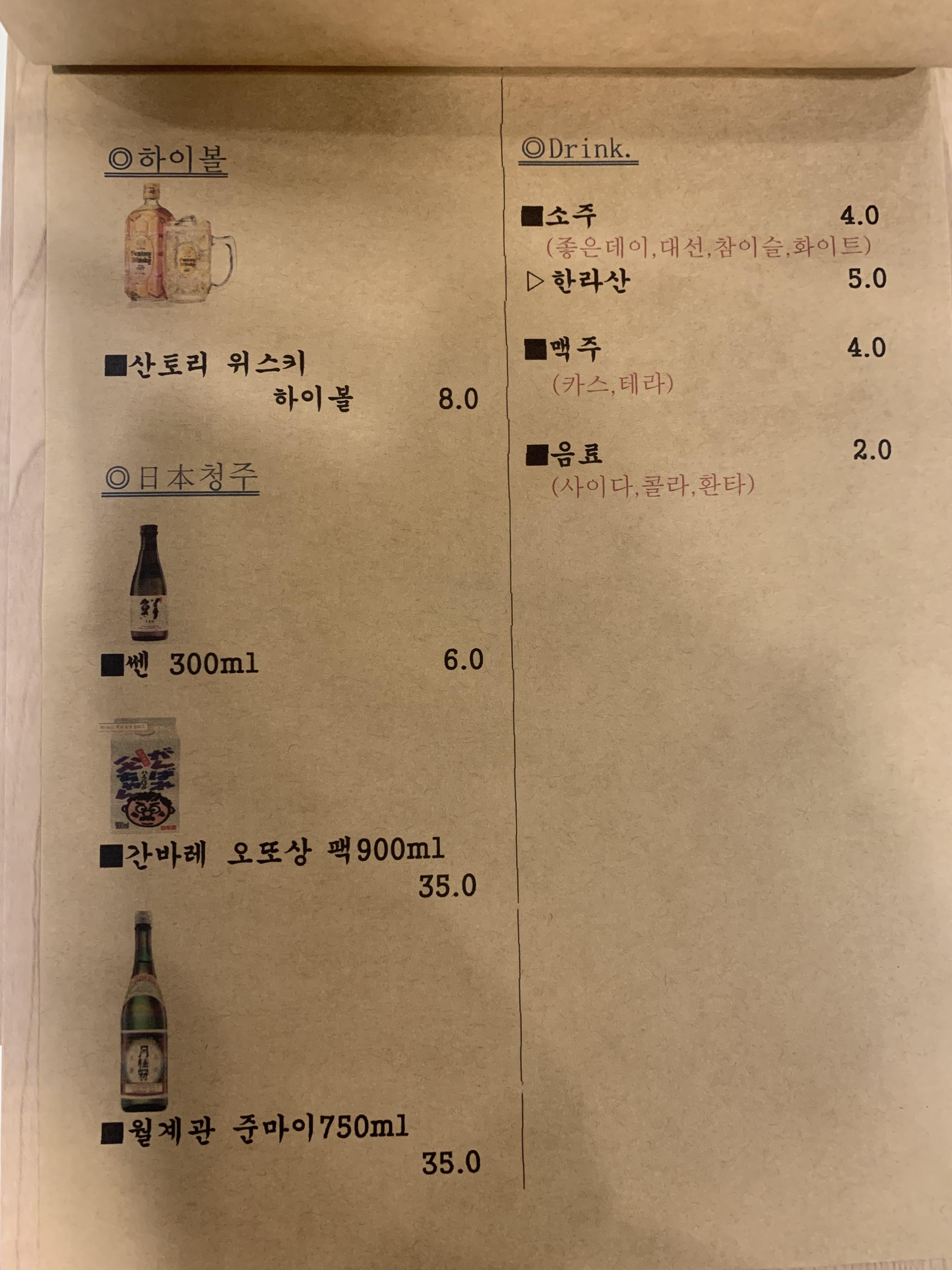 메뉴판이에요!